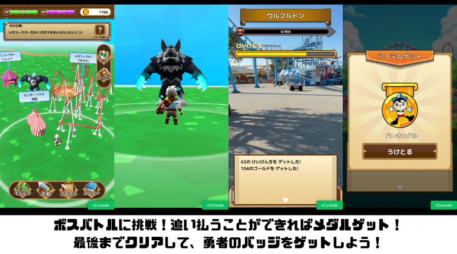 園内にいるモンスターを追い払ってレベルを上げ、ボスを追い払ってクリアをめざそう!