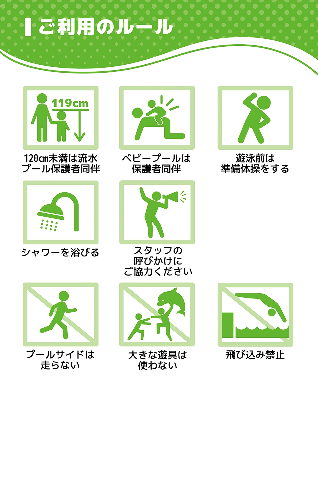 衛生上オムツ着用のお子様の入水はご遠慮ください。